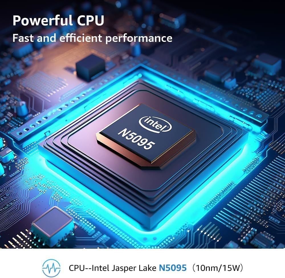 【Intel Jasper Lake N5095 Processor】Powered by the robust Intel Jasper Lake N5095 processor, up to 2.8 GHz). Powerful Student Laptop for Productivity and Efficiency. Get the Job Done with Ease, Fast, Sleek, and Portable.