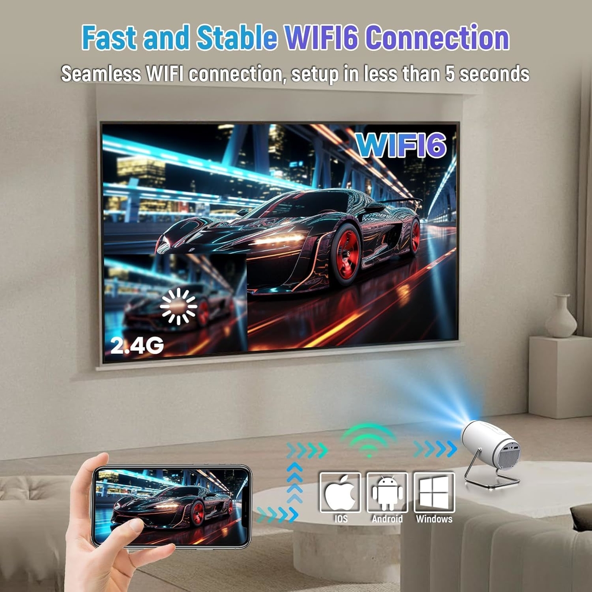 Mini Projector, Projector with WiFi and Bluetooth, 4K 1080P Support Portable Projector 180° Rotatable 120'' Screen Movie Projector Auto Keystone Compatible with HDMI/USB/Smartphone/PC/Laptop